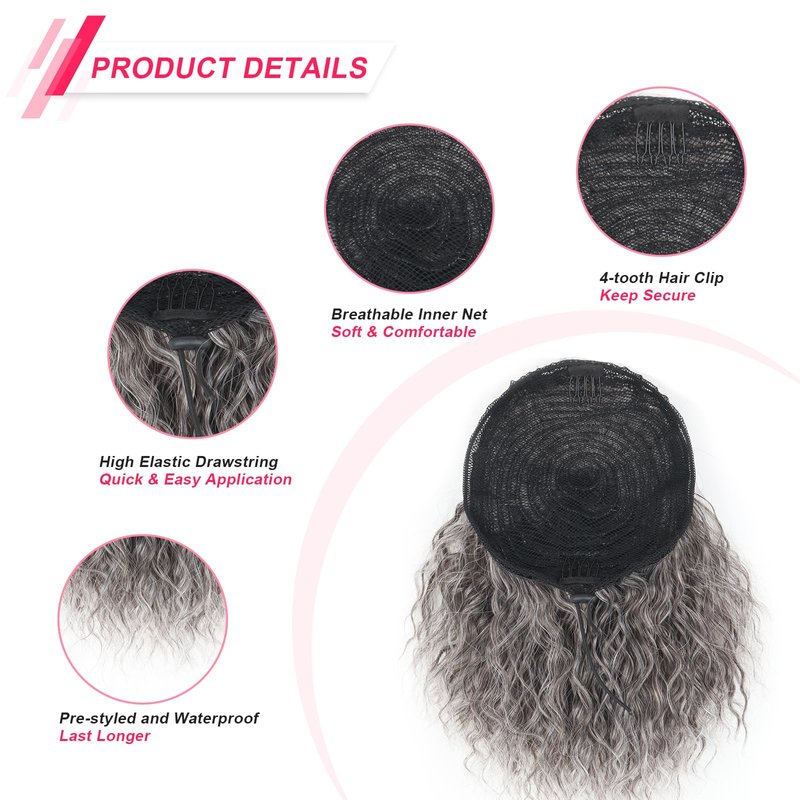 CINHOO Loose Wavy Curly Messy Bun Hair Piece for Thinning Hair Pieces for Women,Short Gray Mix Light Brown Drawstring Ponytail Extensions for Women Synthetic Hair Extensions for Women(Grayish Brown)