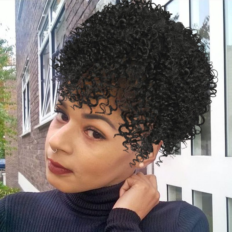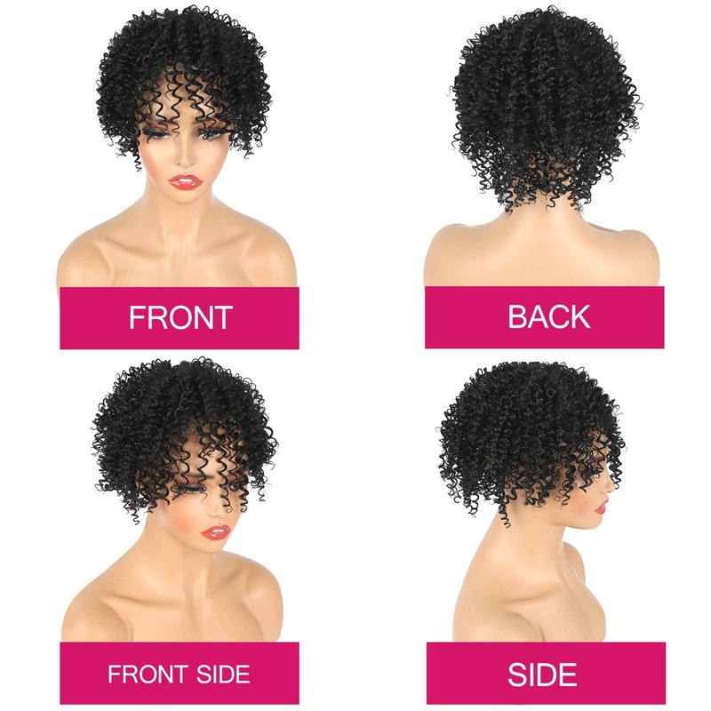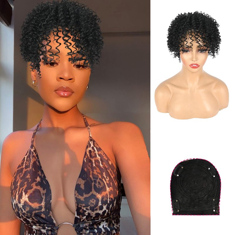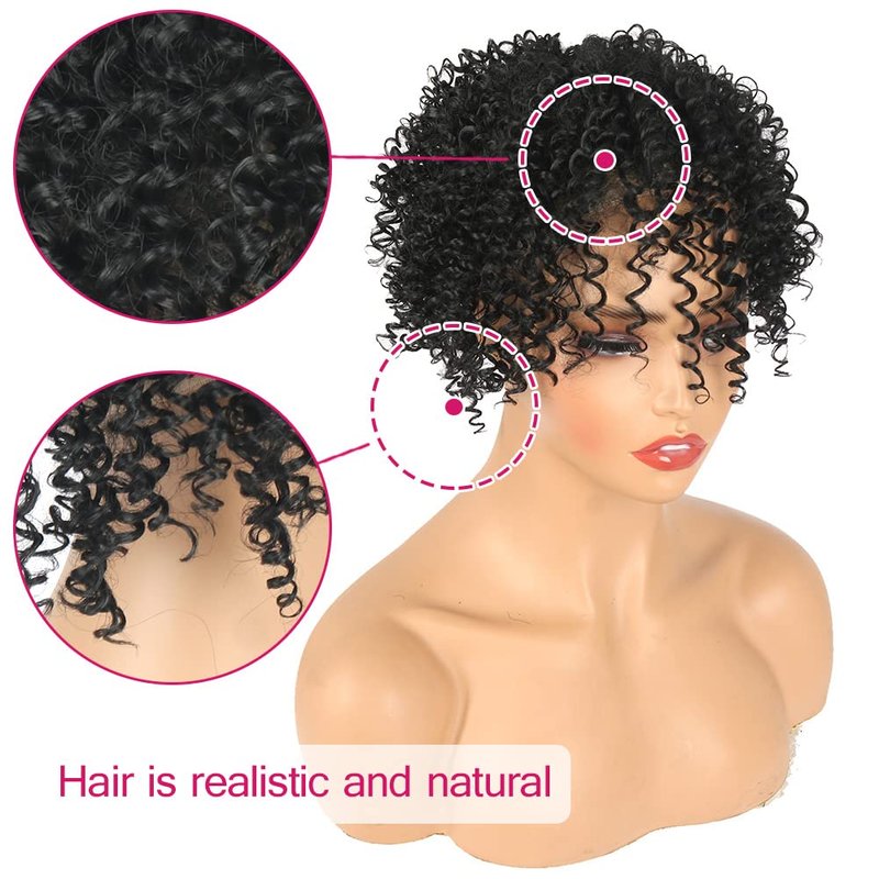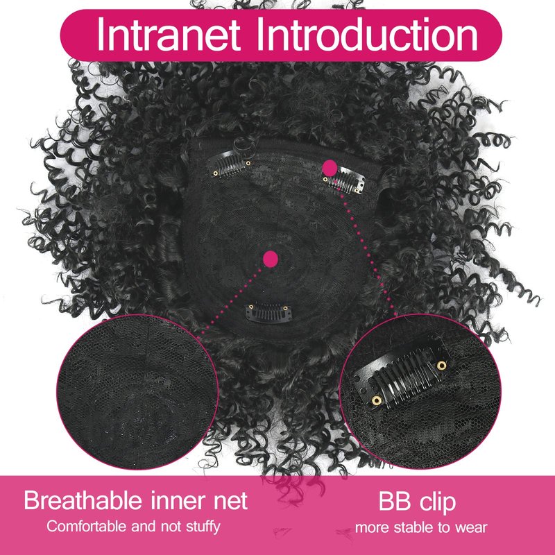 CINHOO Wiglets Hairpieces for Thinning Hair Toppers for Women with Thinning Hair Clip in Bangs Mens Hair Piece Toppers for Women Finger Coil Hair Units Afro Wigs for Women Black Curly Half Wig(1B)