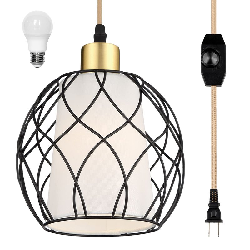 - ⭐【Unique eye protection design】 The traditional Black Cage hanging lights with plug in cord having the open bulb is not comfortable to the eyes. This hanging lamp with plug in cord added a linen lamp shade that will make the light softer. The linen shade is removable, so you get three modes: only lamp shade, only black cage, or black cage & lamp shade. One item, get three different experiences.