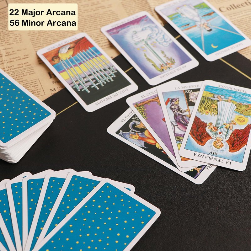 - 【Spanish and English】The tarot deck is marked in both Spanish and English.
