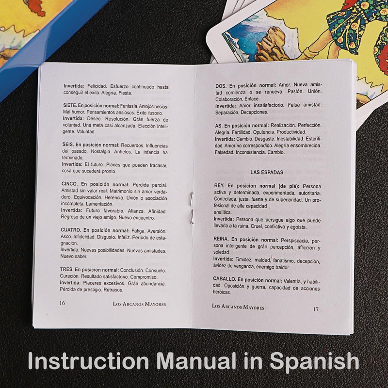 - 【Packing List】English and Spanish tarot cards x 1, Spanish paper guide x 1.