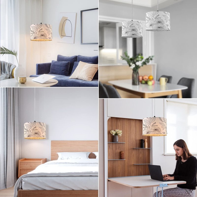 - 【Unique Flower Print Design】 This unique and attractive flower fabric shade is designed with a print design that perfectly integrates the lotus leaf pattern into your room and adds a lot of warmth to your home decoration. The flower fabric lampshade softens the light and provide comfortable and natural light, no flicker, no dazzle. Modern plug in chandelier fit perfectly into your bedroom, living room, dining table, children's room, study, etc.