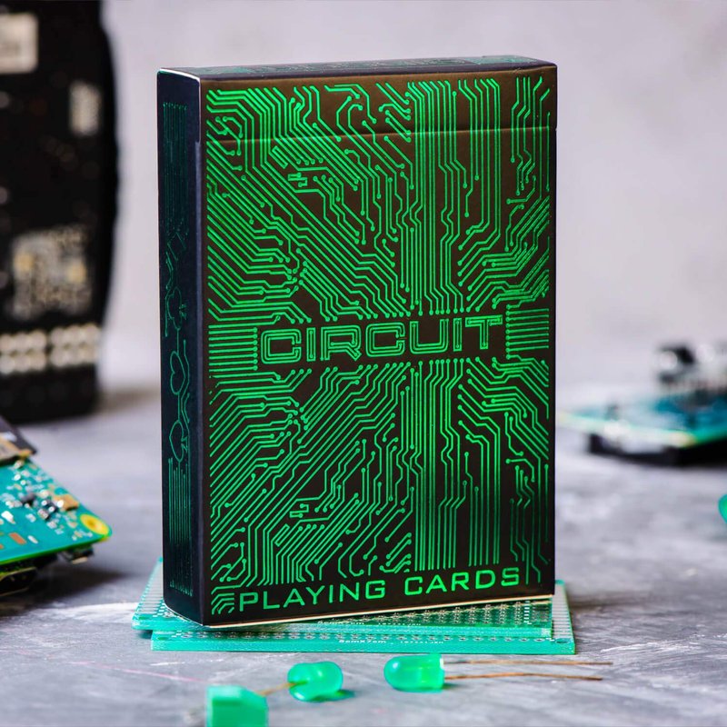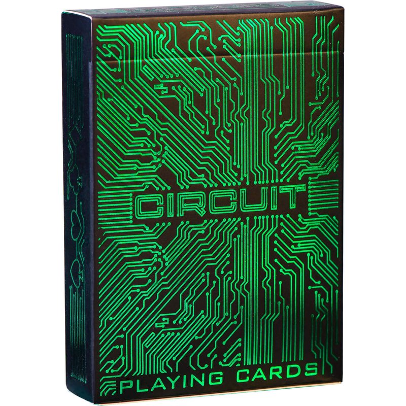 - Turn heads with next-level luxury! With beautiful hand-drawn artwork on a black background, detailed interior print and tuckbox shielded in intricate green foil, the Circuit Cards stand out anywhere. Fully custom designs combine with traditional arrangements to make the perfect deck for any game. The included free card game eBook will also make your next games night a blast with video game tutorials to keep the night going!