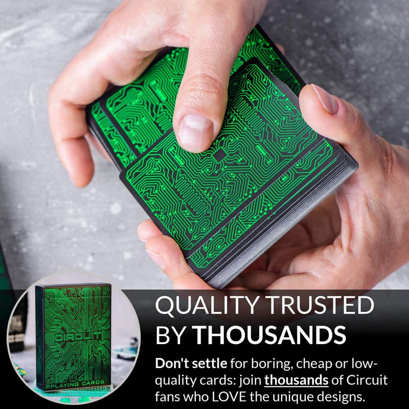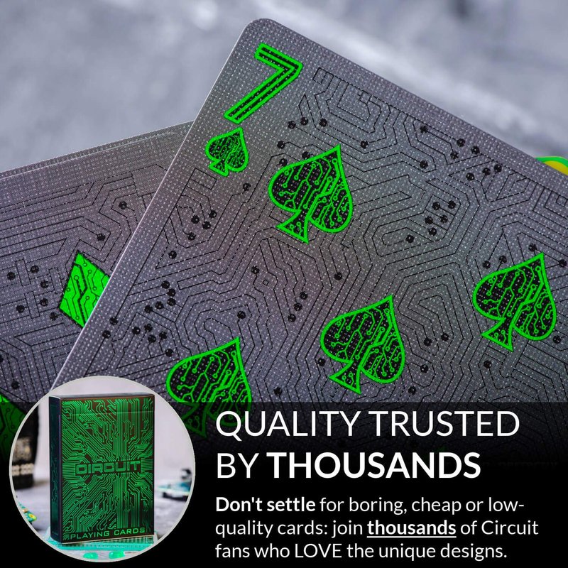 - Quality trusted by thousands! Don’t settle for boring, cheap or low-quality cards: join thousands of Circuit fans who love the unique designs on superior embossed casino-grade card stock and world-class printing techniques which help our decks overcome humidity and frequent usage.