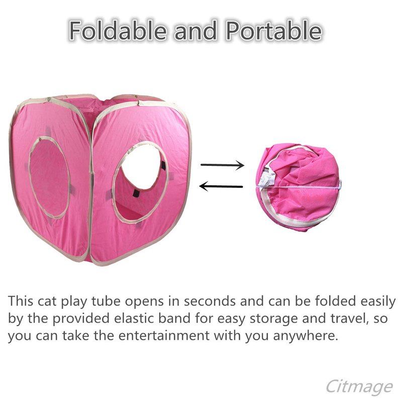 - [FOLDABLE & PORTABLE]:This cat play tube opens in seconds and can be folded easily by the provided elastic band for easy storage and travel, so you can take the entertainment with you anywhere.
