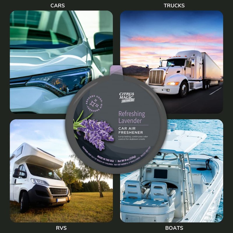 - Automotive Air Fresheners: Citrus Magic car air freshener spreads freshness and fragrance of lavender, and is ideal for cars, trucks, vans, RVs, and more.