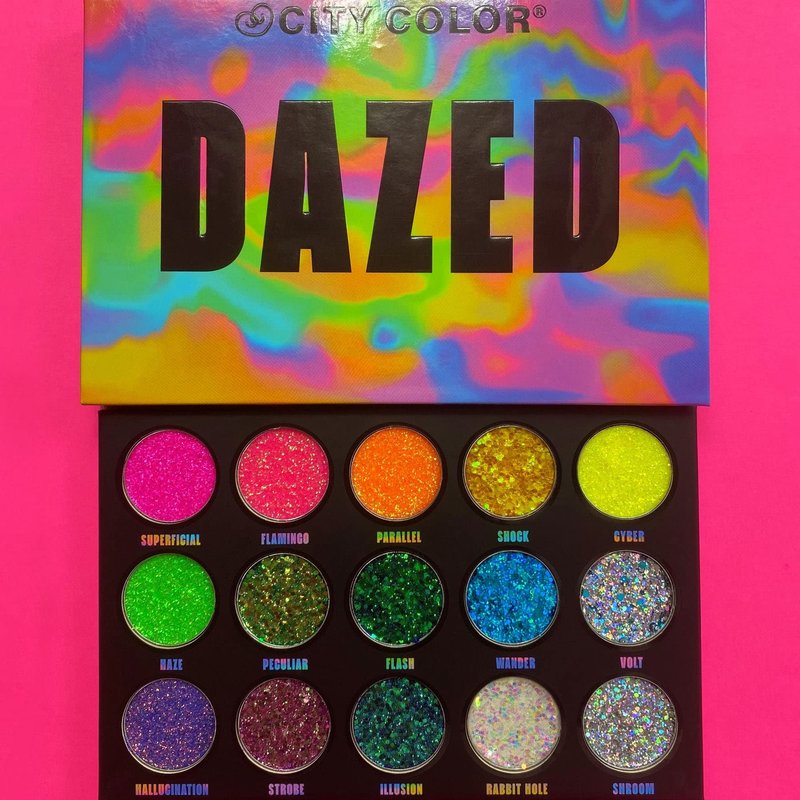 Shine and sparkle with our NEW Dazed Pressed Glitter Palette! Choose from 15 different shades ranging from bright to subtle for the most creative makeup looks.