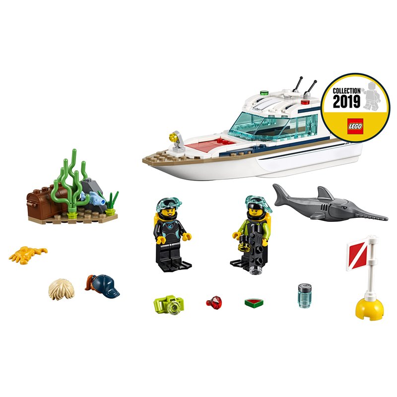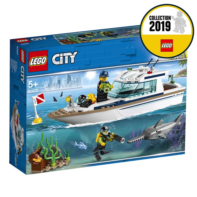 Explore the underwater world with the LEGO City 60221 Diving Toy Yacht.Remove the yacht’s roof to access the lower deck and take a nap.Open the treasure chest to discover the gem element and crab.Swim back to the surface and head to the yacht with your treasure.Contains 148 pieces – Creative playset for boys and girls aged 5+ and toy boat building fans of all ages.Diving yacht toy boat measures over 3” (8 cm) high, 9” (23 cm) long and 2” (6 cm) wide.Sea floor scene measures over 1” (5 cm) high, 1” (4 cm) wide and 1” (4 cm) deep.