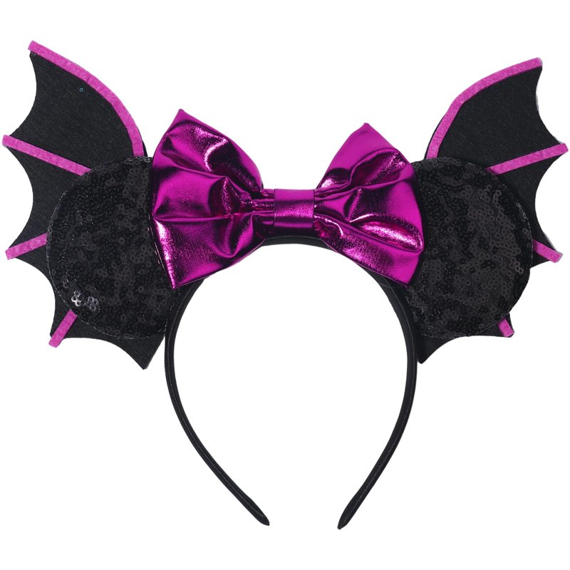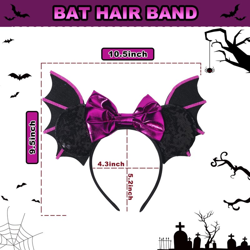 CIVFCRT Halloween Mouse Ears Headbands Purple Bat Purple Shiny Bows Mouse Ears Headbands Halloween Hair Decoration and Mouse Themed Party Supplies Costume Cosplay Decoration for Women(Bat)