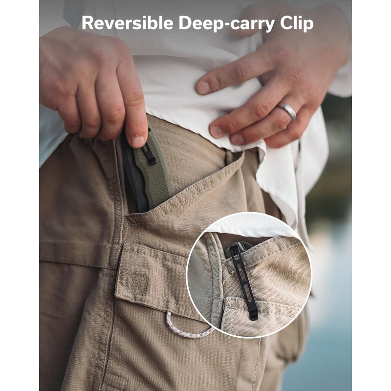 - ✅【Reversible Deep-carry Pocket Clip Knife】It's not a small knife, but it carries very well, practically disappearing in the pocket,ideal folder for camping, hunting, hiking outdoor activities,everyday working carry or collection