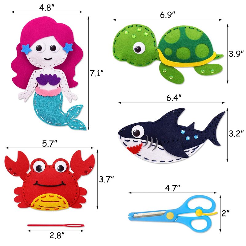 - EDUCATIONAL CRAFT KIT- Sea Animals Sewing Kit not only can inspire kids' imagination by encouraging sewing but also can be used as an educational assistant. This educational sewing kit is a perfect craft to build your kids' sewing skills and patience by keeping them actively engaged and interacting with friends.