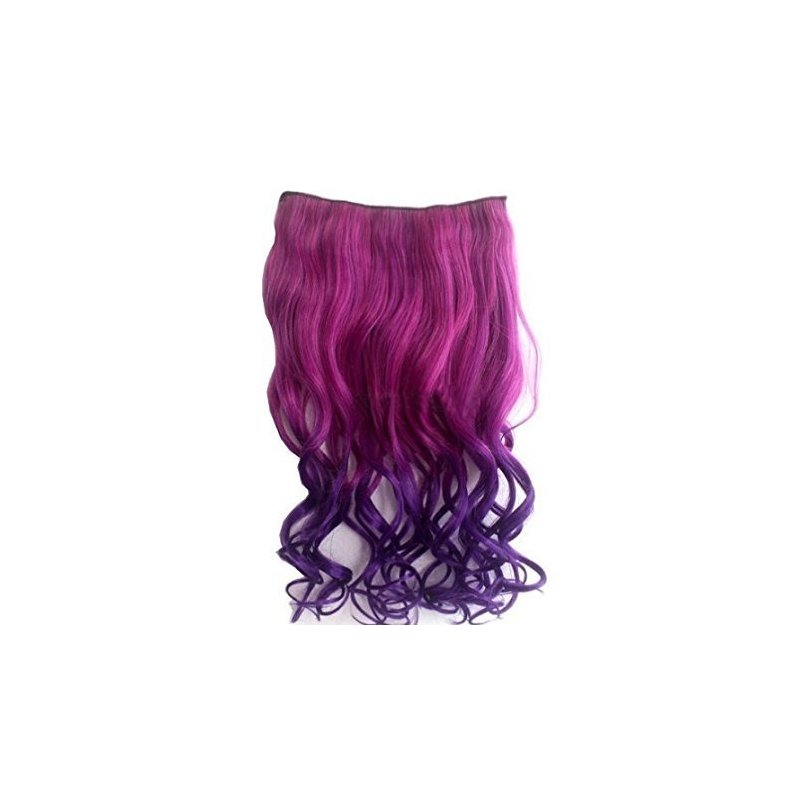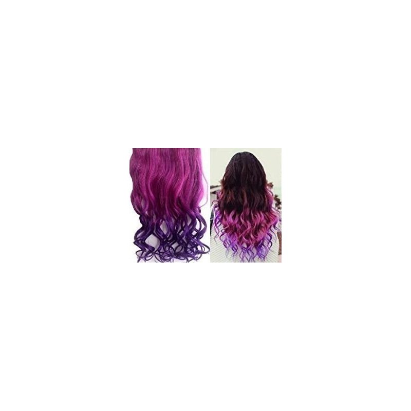 CJESLNA Fashion Sexy Two Tone Long Curl/curly/wavy Clip in Hair Extensions Pieces Wig Girls, Shade Hot Pink to Dark Purple