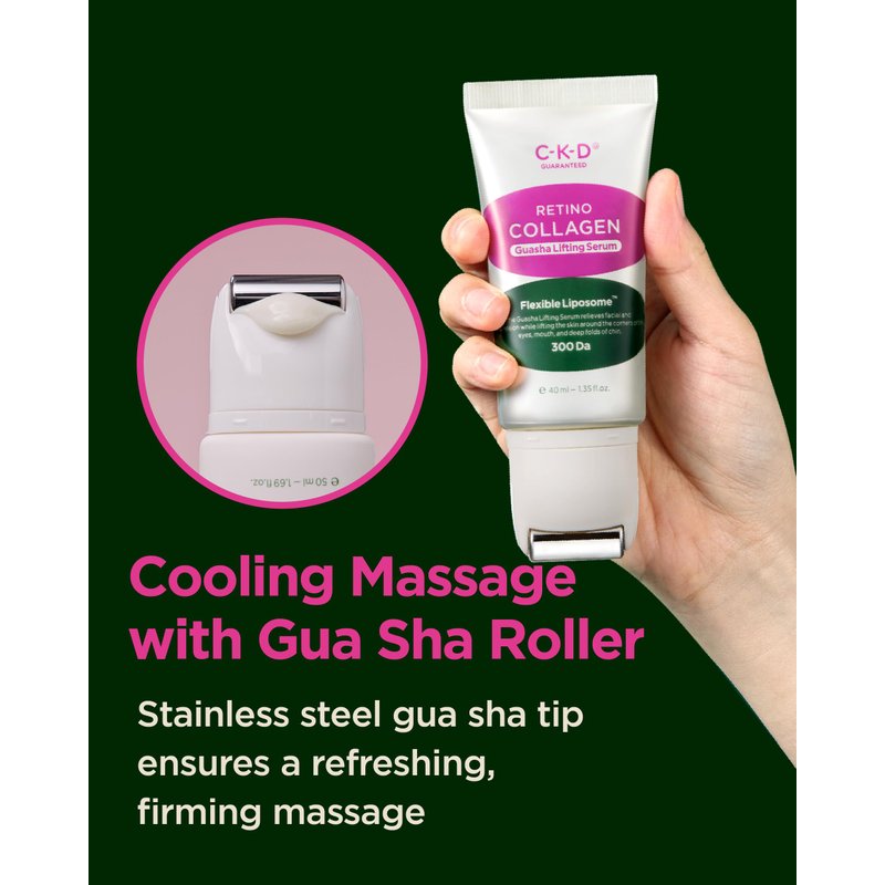 CKD Gua Sha Face Serum 1.35 fl oz - Retino Collagen Lifting Serum for Firming, Tightening, Anti-Aging, and Hydrating. Stainless Steel Roller. Korean Skin Care.