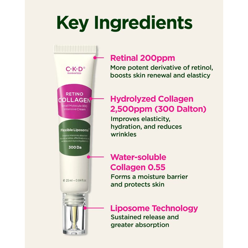 CKD Retino Collagen Intensive Cream 0.84 fl oz - Small Molecular Collagen Cream for Fine Lines, Deep Wrinkles, and Jawline Firming Treatment.