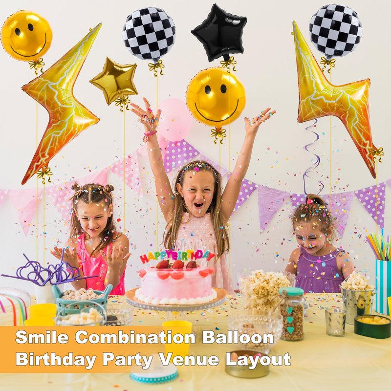 - UNIQUE DESIGN:Want to leave your guests with a wonderful party? The balloons are in black, yellow and white, with lightning shapes and smile faces, adding visual interest and diversity to get your party out of monotony
