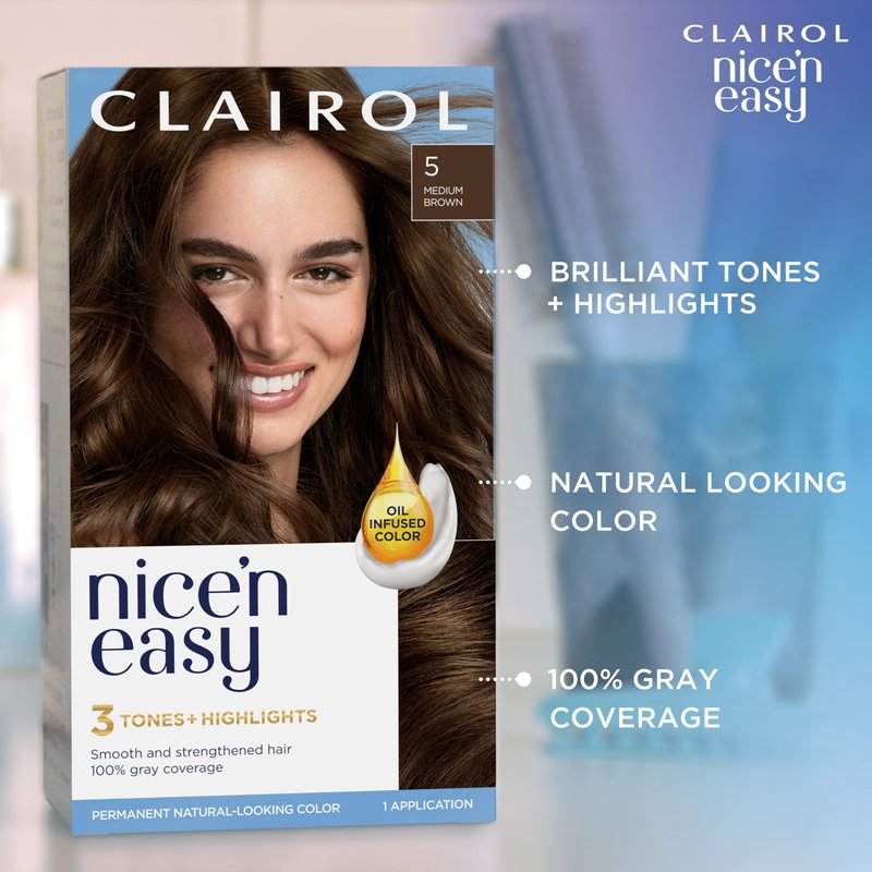 - Get natural-looking color with Clairol Nice'n Easy 5R Natural Medium Auburn