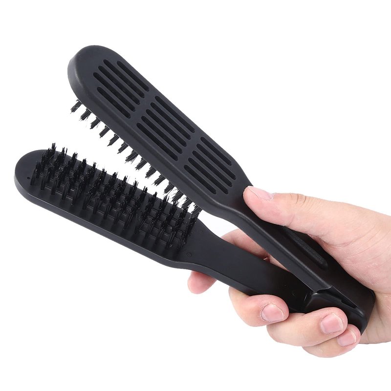 Clamp Hair Brush Double Sided Brush Straightening Detangler Comb,Smoothing Nylon Bristle Straightener Detangler Splint Comb,Hair Styling for Straightening Knotty Unkempt Hair