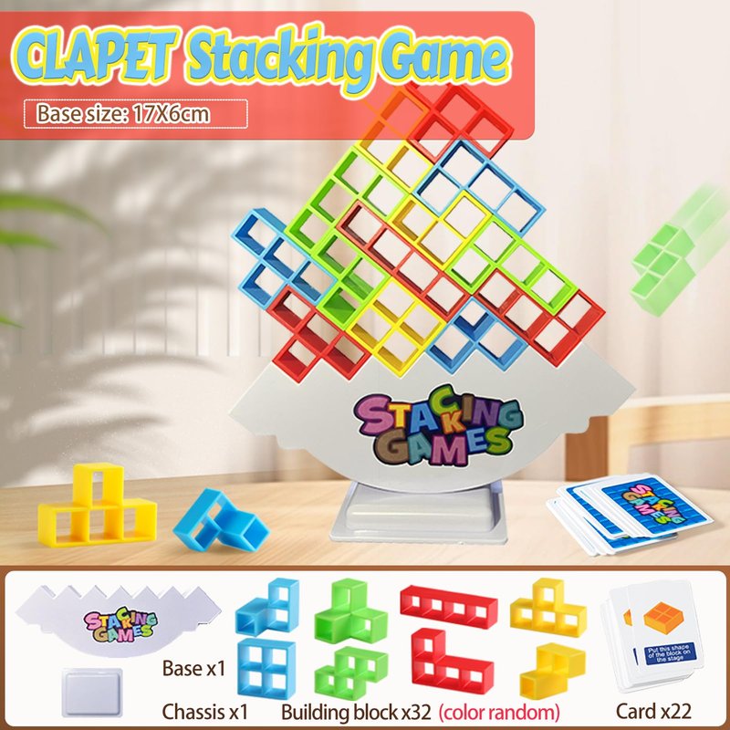 CLAPET 32 Pcs Tetra Tower Stacking Game, Fun Balance Building Blocks Board Games for Kids Adults Family Party, Toys Gifts for Boys Girls Ages 3-12