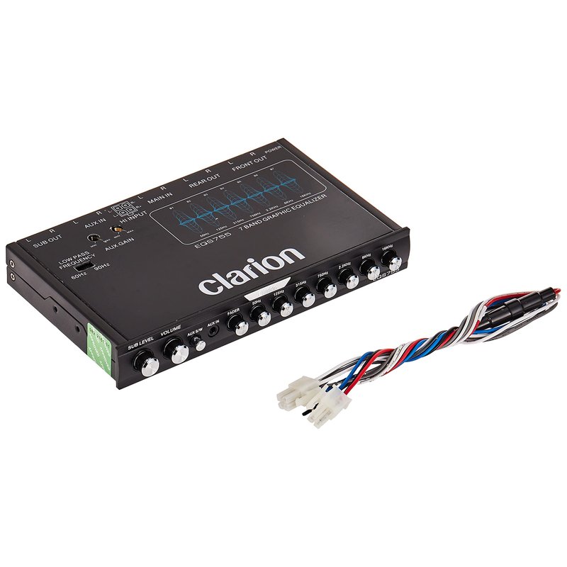 Clarion EQS755 7-Band Car Audio Graphic Equalizer with Front 3.5mm Auxiliary Input, Rear RCA Auxiliary Input and High Level Speaker Inputs, BLACK