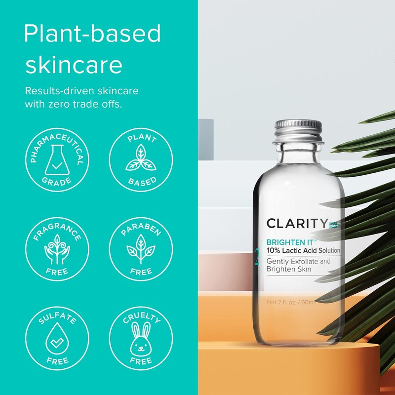 ClarityRx Brighten It 10% Lactic Acid Solution, Natural Plant-Based Exfoliating Face Treatment for Dark Spots, Discoloration & Uneven Skin (2 fl oz)