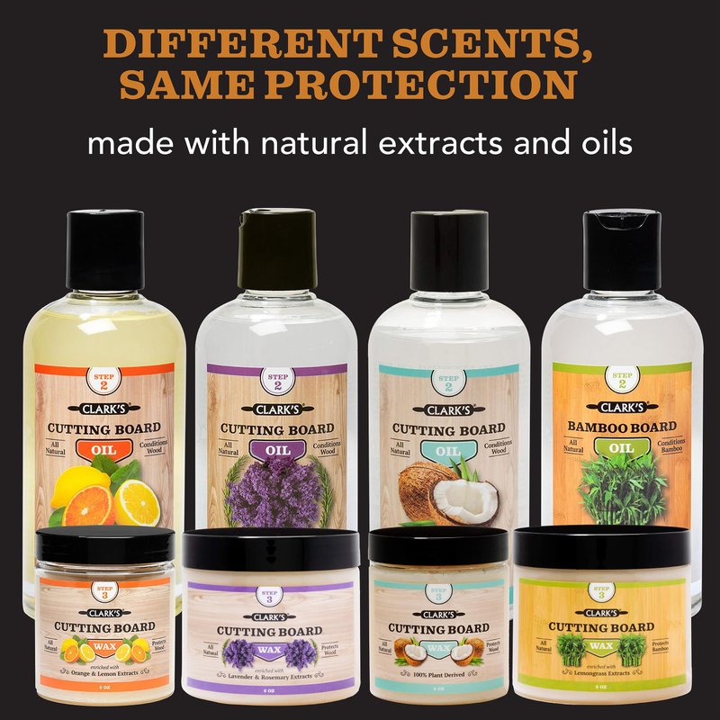 CLARK'S Bamboo Cutting Board Care Kit, Includes Mineral Oil (12oz) and Carnauba Beeswax (6oz) Enriched with Orange & Lemon Extract, Bamboo Cutting Board Oil Food Grade, Cutting Board Wax Bamboo