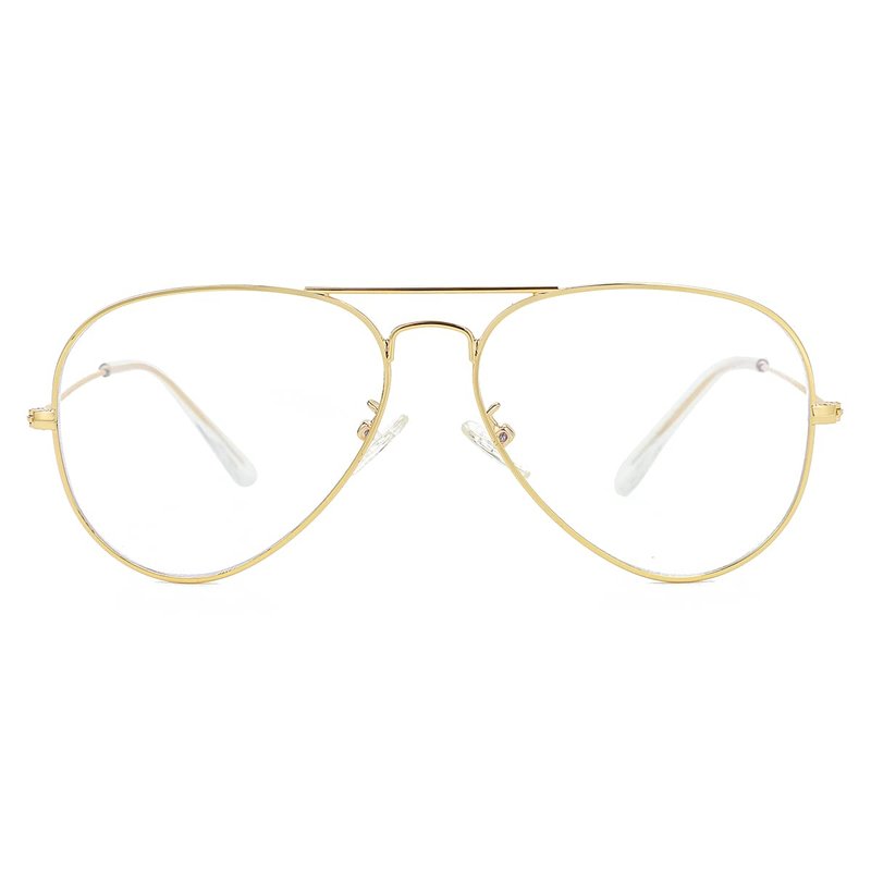 Classic Aviator Blue Light Glasses for Women Men, Metal Frame Clear Lens Eyeglasses (Gold)