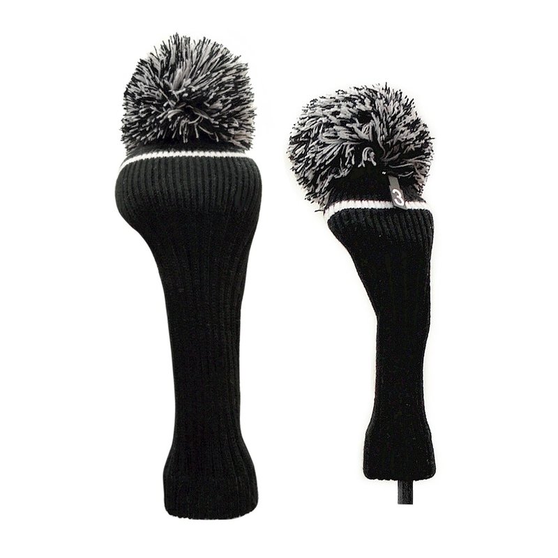- Black Classic Knit Spandex Pom Pom Head Cover for Drivers