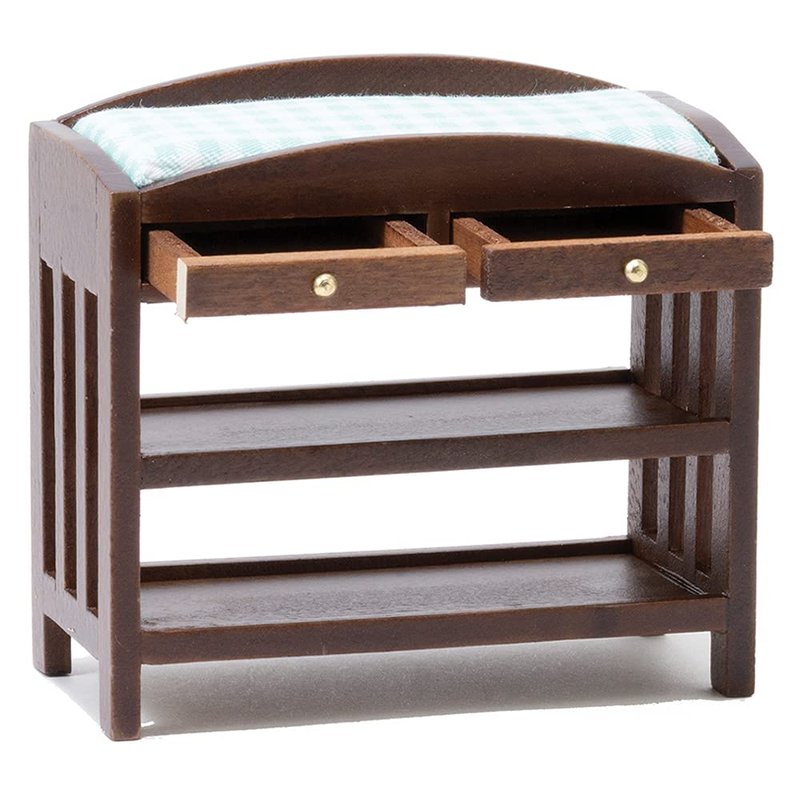 Classics by Handley Dollhouse Miniature Slatted Changing Table with Mattress (Walnut Changing Table with Blue Mattress)
