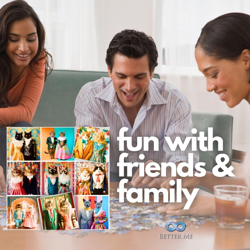 - A fun cat jigsaw puzzle with plenty of well-dressed kitties! Ideal cute puzzle, fun puzzle, kitten puzzle for family puzzle night or with friends