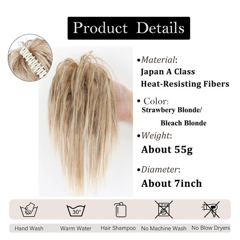 Claw Clip Messy Hair Piece Tousled Updo Messy Hair Bun Hair Scrunchies Synthetic Wavy Curly Chignon Hair Extension Ponytail Hairpieces for Women (Strawberry Blonde/Bleach Blonde)