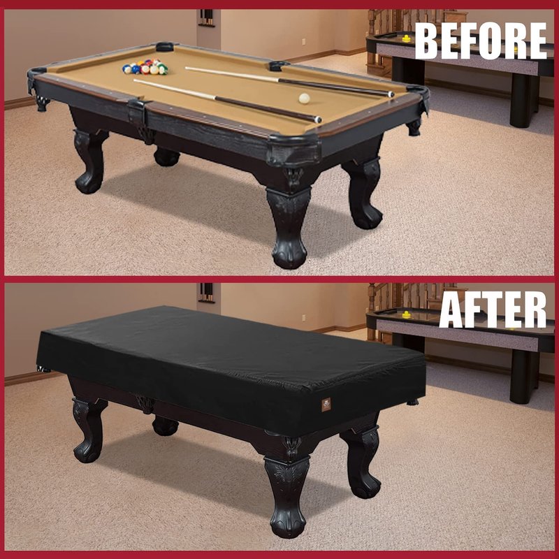 - ✅DURABLE MATERIAL THAN OTHERS & NO BAD SMELL--Made of durability well made 420D polyester cloth pool table covers waterproof outdoor,Better than Leatherette and with durable double stitching which is waterproof,fadeless,uv protection,anti-aging,tear proof,dust proof,snow proof and no bad smell than leatherette materials.