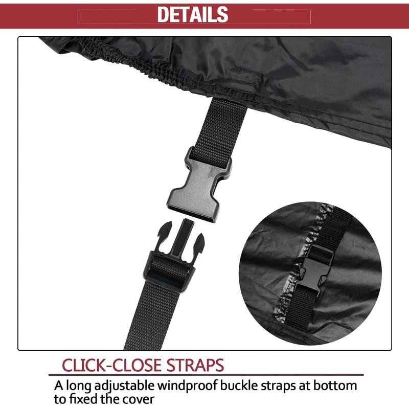 - ✅1PCS WINDPROOF CLICK-CLOSE STRAPS --We have 1Pcs and 62 inch length adjustable windproof click-close straps at the cover bottom to resistant the strong winds or fixed well on the table,and it can use for indoor and outside.