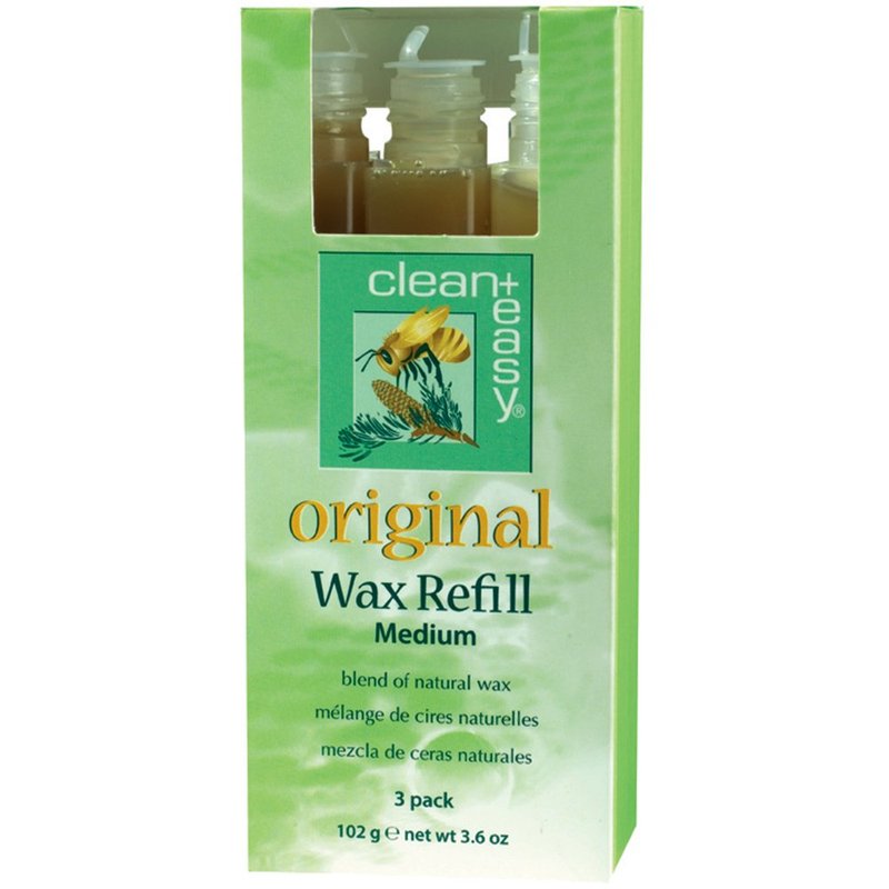 Clean + Easy Medium Original Roll On Wax Refill for Wax Cartridge, Hygienic Depilatory Hair Removal Treatment, Removes Fine to Coarse Hairs, Perfect for Delicate Skin - 3 Packs