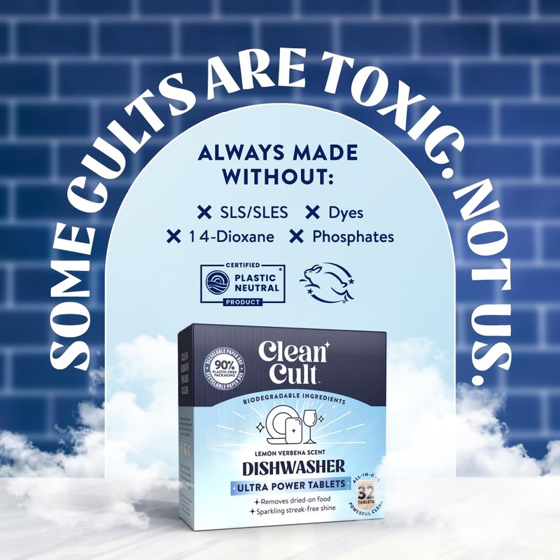 Cleancult Ultra Power Dishwasher Detergent Tablets for Sparkling Streak-Free Shine, All-In-One, Less Plastic Waste, 32 Count