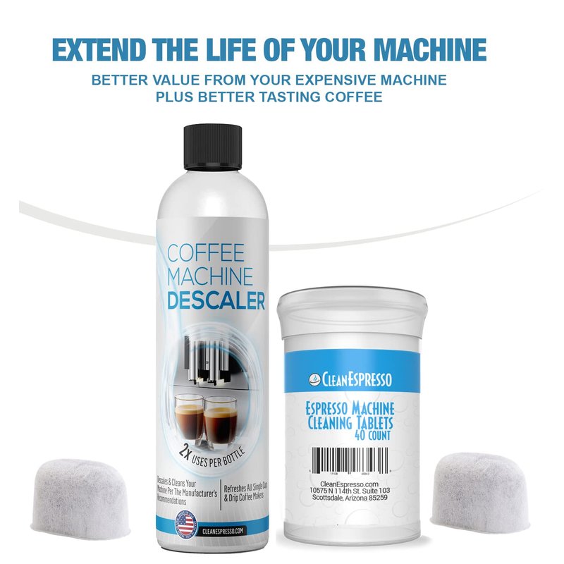- BETTER TASTING ESPRESSO: Limescale and other mineral deposits quickly build up in your brewer, which alters the taste of your coffee. Restore the best taste and protect your machine. Using this espresso cleaning kit will help extend the life of your machine. Better value from your machine, plus better tasting coffee