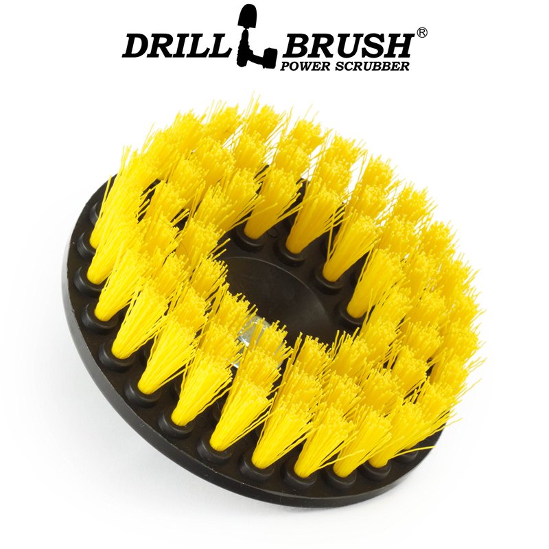 • 5-inch diameter Medium Yellow powered brush kit for cleaning and scrubbing bathroom surfaces. Stuck on soap scum, and water stains got you down? Let our Drillbrush 5-inch threaded flat yellow cut through any cleaning need. This offer includes our most popular 5-inch threaded flat scrub brush, great for cutting into large flat messes with ease. This bathroom cleaning brush will break up any stuck-on stains with ease. This bathroom scrubber brush is perfect for larger areas such as shower walls.