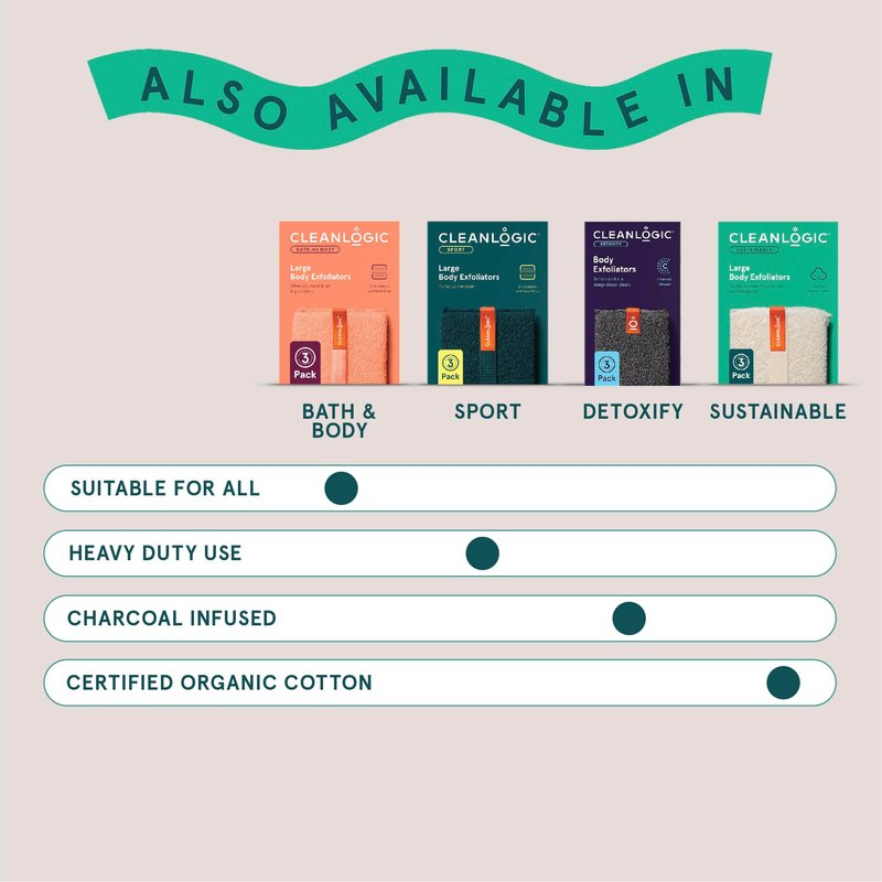 Cleanlogic Organic Cotton Exfoliating Body Scrubber, Reusable Exfoliator Tool for Smooth and Softer Skin, Daily Skincare Routine, Natural, 3 Count Value Pack