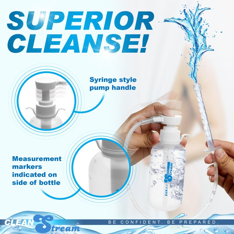 Cleanstream Pump Action Enema Bottle with Nozzle, Travel Enema Kit for Colon Cleansing with Syringe Handle and Nozzle Tip, Reusable at Home Cleaner Set for Men and Women, Premium Silicone, 300 ml