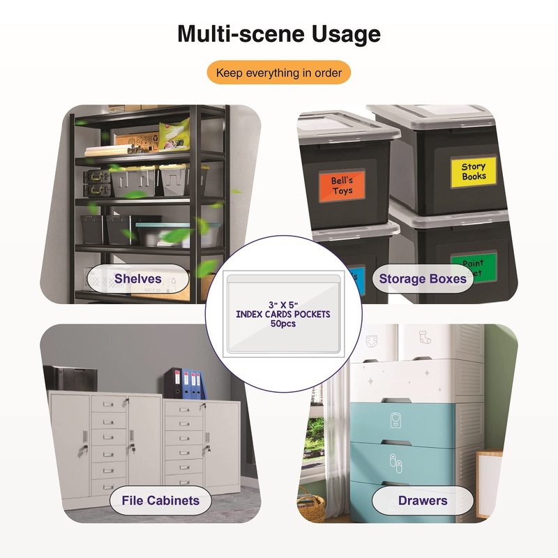 - Versatile Use: Keep these clear sleeves handy at home, in the classroom or in the office; they can be used for reminding, learning, presentations, marking, labeling, inserting index cards or name tags, packaging and shipping. Commonly used to label and organize: bins, totes, notebooks, boxes, drawers, containers, desks, library card pockets.