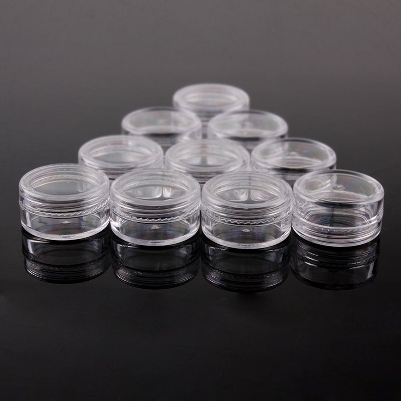 Clear Empty 5 Gram 5ML 1 1/4" inch X Height: 3/4 inch Size Empty Clear Plastic Cosmetic Containers tiny bottle/Powder Container/Eye shadow Container Lot/Cosmetic Containers Pot Jars (100PCS)