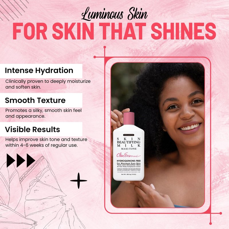 Clear Essence Exclusive Skin Beautifying Milk Hydroquinone-Free Maxi-tone Lotion - Skin Lotion for Hydrating Dry Skin - Hydrating Lotion to Hydrate Skin with Shine - (10.0 Oz.)