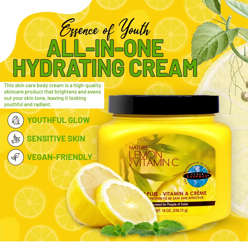 Clear Essence Lemon Plus Vitamin C Cream for Face with Vitamin C and A for Skin Brightening - Dark Spot Remover for Face - Skin Care Body Cream-Skin Brightening Moisturize-Cream for Aging Skin 19 Oz.