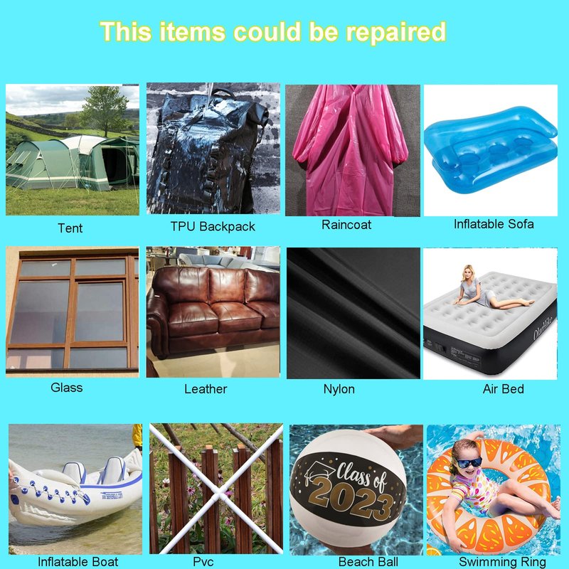 - Used for repairing and replenishing air boats and swimming rings. Suitable for all kinds of high-value inflatable products, such as air mattresses, inflatable boats, trampolines, inflatable sofas, swimming rings, beach balls, etc.