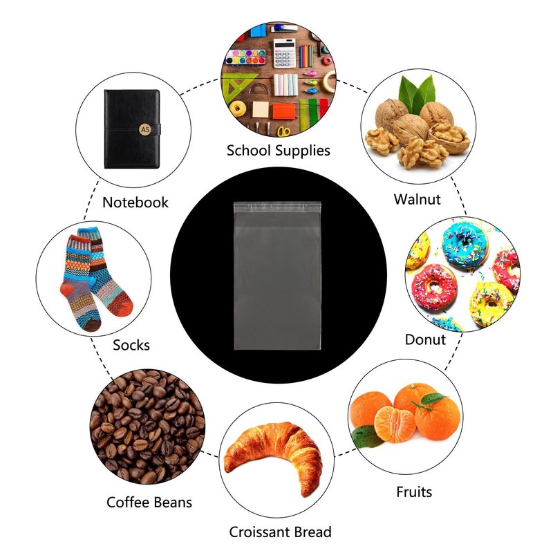 - Food-grade, made of new polypropylene material (OPP), durable, odorless, non-toxic, environmental friendly and acid free. Widened adhesive sticks to ensure more tight seal, make the package better, convenient to store and reuse.