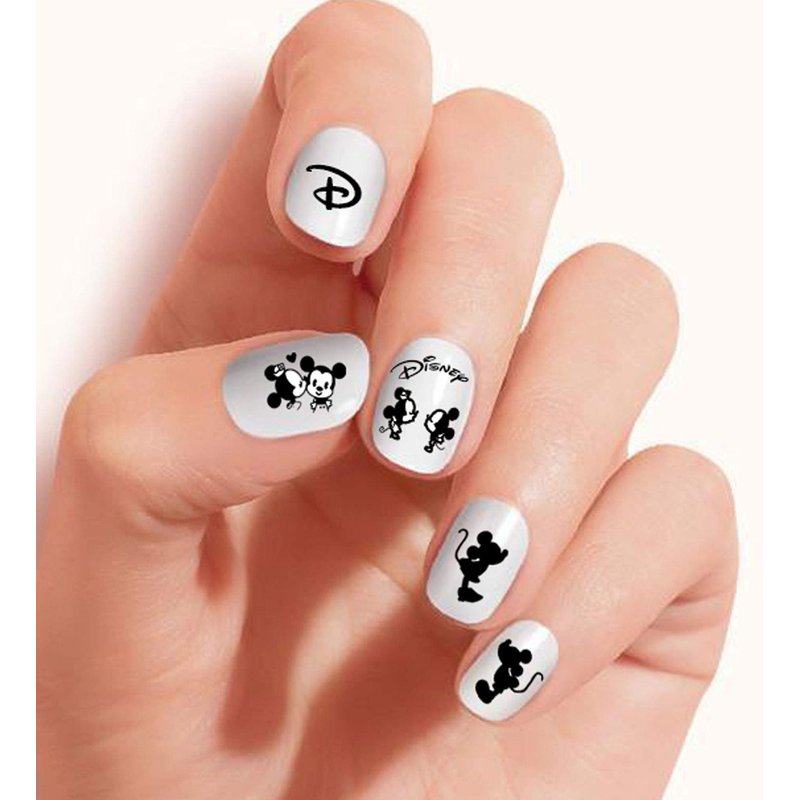 - Clear vinyl Cut, Peel and Stick nail art decals/stickers by DimOxy Designs themed for Mickey and Minnie black and white (Ver.2) lovers.