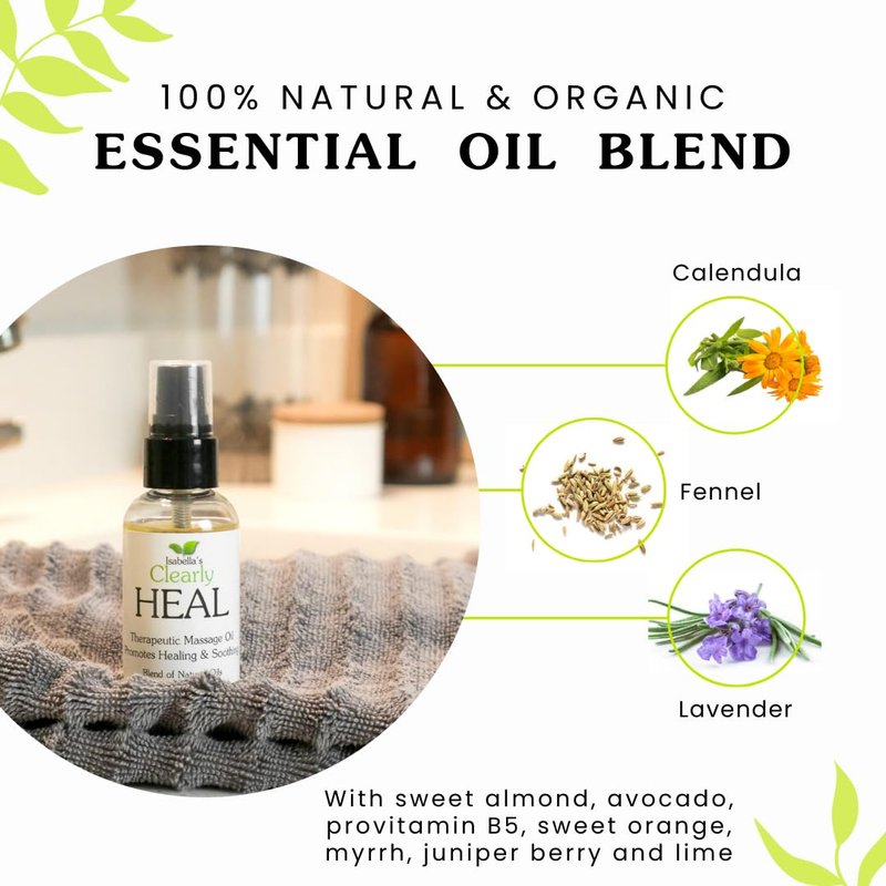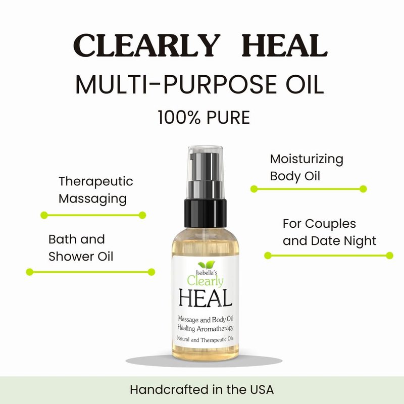 - ✔ PURE ESSENTIAL OILS (NO SYNTHETICS) - Experience serenity and relaxation with Clearly HEAL's aromatherapeutic qualities. Our natural oil is scented with pure essential oils for their therapeutic benefit, making it the perfect choice for those seeking a truly natural and chemical-free massage and body oil that smells great!