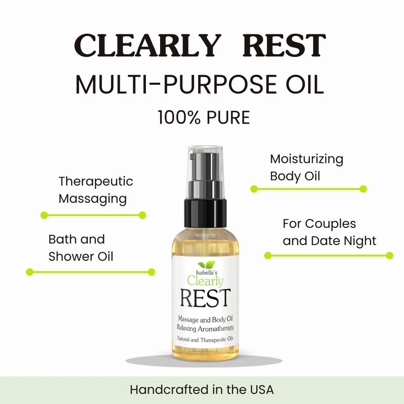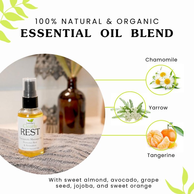 - ✔ PURE ESSENTIAL OILS (NO SYNTHETICS) - Experience serenity and relaxation with Clearly REST's aromatherapeutic qualities. Our natural and essential oil blend contains no synthetic fragrances, making it the perfect choice for those seeking a truly natural and chemical-free massage and body oil.