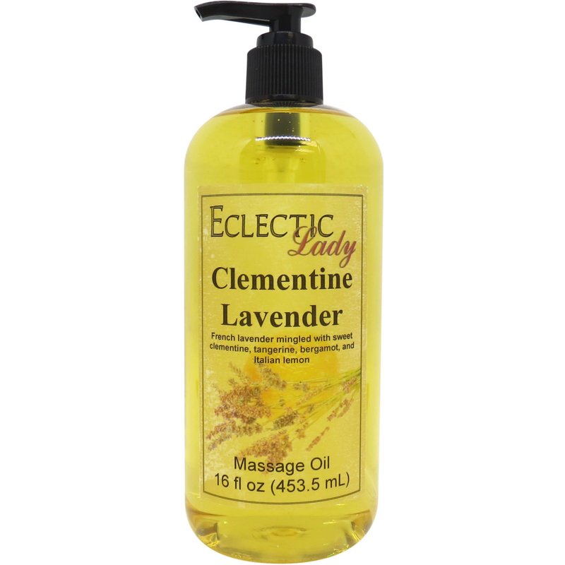 Clementine Lavender Massage Oil, 16 oz, With Sweet Almond Oil and Jojoba Oil, Preservative Free, Perfect for Aromatherapy and Relaxation