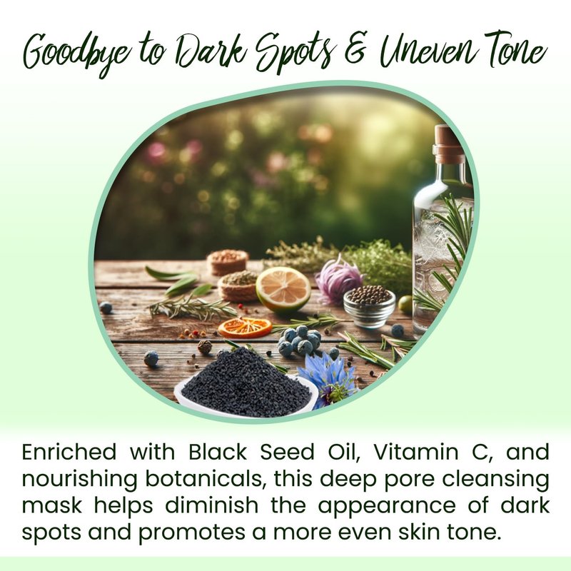 - Say Goodbye to Dark Spots & Uneven Tone : Enriched with Black Seed Oil, Vitamin C, and nourishing botanicals, this deep pore cleansing mask helps diminish the appearance of dark spots and promotes a more even skin tone.