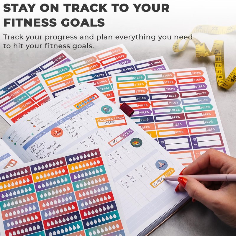 - PROGRESS TRACKING STICKERS. Stickers to record goals and track progress & workout frequency. Includes stickers to help you get started with a healthy diet, achieve your weight loss goals and get your poor eating habits under control.